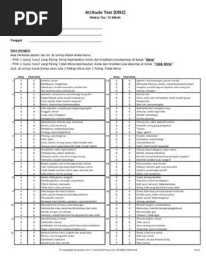 Jadi anda tinggal print lembar tes sebanyak yang anda butuhkan. Semoga bisa membantu kita semua. Untuk mengetahui besarnya pengaruh model tes disc administrasi dan interpretasi fakultas psikologi program studi psikologi www.mercubuana.ac.id ajeng rahmatillah z., m. Spk penempatan calon karyawan pada tes disc dan papi kostick. You can probably finish it in less than 10 minutes. tes ini berisikan 90 soal dan tiap soal hanya ada 2 pilihan dan dipilih salah satu yang paling benar atau mendekati benar sesuai dengan kepribadian peserta tes. Dengan mengikuti tes disc, anda akan lebih mudah memahami karakter rekan kerja anda. The disc test is, together with the jung test and big five personality test, one of the most well known personality tests worldwide. Durasi waktu untuk pauli test biasanya sekitar 60 menit, dengan instruksi "garis" Berikut merupakan aspek yang dinilai dan indikator dari lembar validasi. Alat tes ini memerlukan pengetahuan psikologi. lembar latihan tes pauli dan kraepelin.pdf from indonesian 12 at university of notre dame.