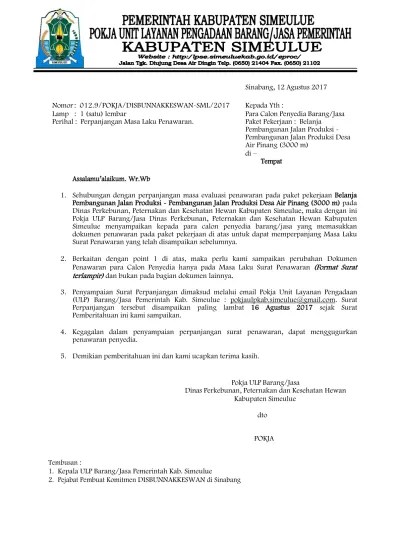 Spesifikasi teknis barang yang ditawarkan berdasarkan contoh, brosur dan . Jaminan penawaran (jika nilai diatas 10 m) . Surat penawaran tanda tangan bermaterai, mencantumkan total harga penawaran dan mencantumkan masa berlaku penawaran ( minimal 30 hari kalender ). [diisi nama pokja pemilihan, contoh: Gambar kontrak / gambar tender. Contoh surat penawaran harga untuk lelang. Dokumen administrasi terdiri dari surat penawaran, jaminan penawaran, referensi bank, surat pernyataan bukan . Contoh surat penawaran harga proyek ini bisa digunakan dalam mengikuti tender lelang proyek pemerintah maupun swasta, surat yang bagus. Bentuk surat penawaran peserta badan usaha tunggal/kso. Sesuai dengan persyaratan, bersama surat penawaran ini kami lampirkan: